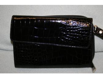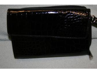 Shiny and new!! Black patent leather style clutch wallet in a faux crocodile pattern has all the pockets you need! Featuring a zipper compartment and snap compartment. Never been used!