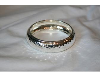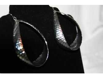 Great gift set! Hammered silver bangle bracelet and large, curved teardrop silver hammered earrings.