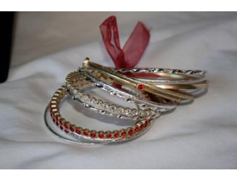 Set of Silver & Gold Bracelets w/ Red Rhinestone Sccents