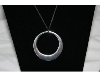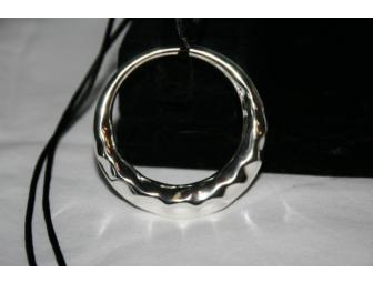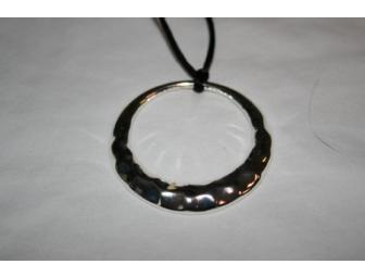 White House:Black Market Semi-Hammered O-Ring SIlver Pendant Necklace w/ Black Lanyard