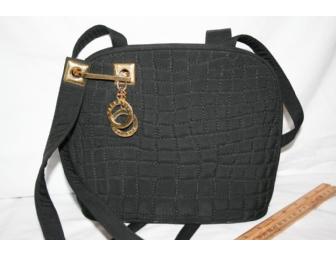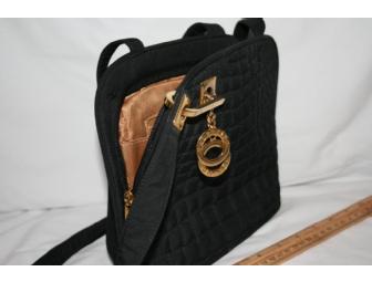 Valentino Orlandi Black Quilted Fabric Purse w/Gold Embellishments