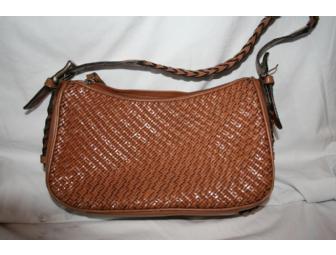 Brown weave pattern and silver hardware make up this Talbots handbag.