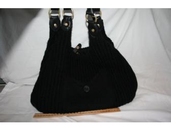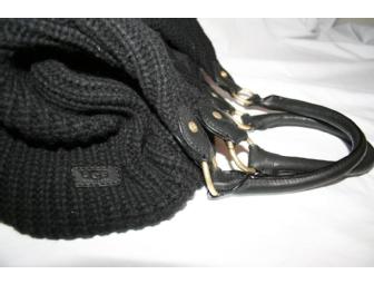 This black acrylic/wool knit hobo tote is made by Ugg Australia. Gold hardware, black rolled handles, dual snap closures on both sides, & black interior. Used and in excellent condition; looks like it has never been used!