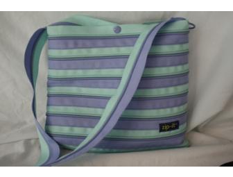 Perfect for that special little someone! This bag, made entirely from zippers features the young and sweet colors of purple and teal. Unique and original!
