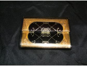 Very sophisticated gold filigree & black leather wallet.
