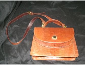 Brown crocodile leather purse by Davido Gracia, with gold buckle & gold accents.
