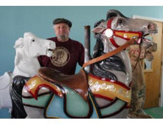 The high bidder will win the opportunity to closely observe and work with James in his restoration studio (located next to the Carousel in the building that houses the gift shop and creamery) and take part in the restoration process of a carousel horse.