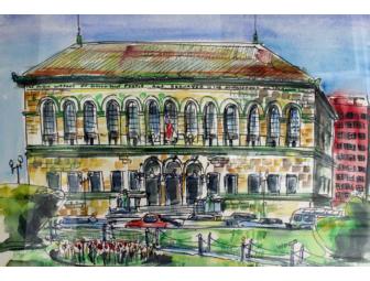 This lovely rendering of the historic Boston Public Library is professionally matted, framed, and ready to hang in your special space.