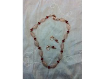Rose Quartz, Rose Gold, & Swarovski Crystal Necklace & Matching Earrings