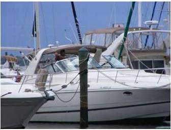 What could be better than having lunch on a Saturday afternoon with a close friend or family member aboard a beautiful 43-foot Cruiser Yacht International. The boat is located at the Twin Dolphin Marina in Tampa Bay, FL.