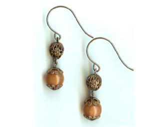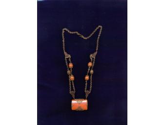 You are bidding on a red Aventurine necklace wrapped with vintage filigree and a pair of matching earrings.
