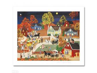 BRING HOME THIS BRIGHT AND BEAUTIFUL ARTWORK BY DENEILLE SPOHN MOES! With a quaint style and a colorful eye, Deneille Spohn Moes creates endearing images of quintessential Americana that bring life and laughter into your home. "Harvest Moon" is a limited edition mixed media on paper, numbered and hand signed by Moes. This image was produced using the techniques of both offset lithography and serigraphy to create a remarkable piece. Includes Certificate of Authenticity! Measures approx. 16.5" x 13.5" (with border), 14.5" x 11.5" (image). Listprice: $395.00
