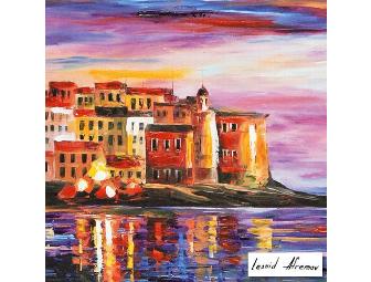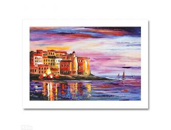 NOW IS YOUR CHANCE TO OWN THIS EXQUISITE MASTERPIECE BY THE RENOWNED LEONID AFREMOV! With intense, vivid colors and free brush strokes, Leonid Afremov creates paintings that are captivating in their emotional intensity. "Italy, Liguria" is an extremely limited edition hand-embellished giclee on canvas, numbered in verso out of only 25 with Afremov's authorized signature. Includes Certificate of Authenticity! Measures approx. 24" x 16" (image). Listprice: $1,300.00