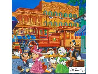 "Arriving in Style" LIMITED EDITION Mixed Media by Manny Hernandez, Licensed Disney Fine Art, Numbered and Hand Signed with Certificate of Authenticity! ** List Price: $695.00RELIVE YOUR FAVORITE DISNEY MOMENTS WITH THE ARTWORK OF MANNY HERNANDEZ! With incredible talent, intricate details, and vibrant hues, Manny Hernandez captures the essence of the Disney characters he lovingly renders. "Engine 55" is a limited edition mixed media on paper, numbered and hand signed by Hernandez. This piece is licensed by Disney Fine Art. Includes Certificate of Authenticity! Measures approx. 29" x 20" (with border), 27" x 18" (image). Listprice: $695.00