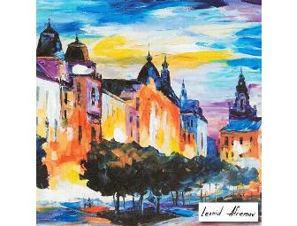 NOW IS YOUR CHANCE TO OWN THIS EXQUISITE MASTERPIECE BY THE RENOWNED LEONID AFREMOV! With intense, vivid colors and free brush strokes, Leonid Afremov creates paintings that are captivating in their emotional intensity. "View From the Park" is an extremely limited edition hand-embellished giclee on canvas, numbered in verso out of only 25 with Afremov's authorized signature. Includes Certificate of Authenticity! Measures approx. 14 x 11" (image). Listprice: $1,050.00