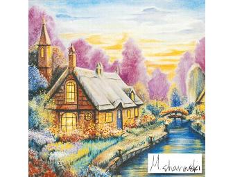 BRING THE BEAUTY OF MICHAEL SHARINSKI'S TALENT INTO YOUR HOME! Romantic imagery and soft, sweet scenery make Michael Sharinski's artwork a perfect addition to any collection. "Darice's Cottage" is a limited edition mixed media on paper, EA numbered with Roman numerals and hand signed by Sharinski. This image was produced using the techniques of both offset lithography and serigraphy to create a remarkable piece. This piece was acquired in a gallery close-out and there is no specific certificate information available. Measures approx. 27" x 19.5" (with border), 26.5" x 19" (image). Listprice: $1,900.00