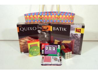 This set features fun, original games for the whole family! This bundle has it all: Quixo, Batik, Flippit, Set, a Rubik cube and 2 decks of playing cards.