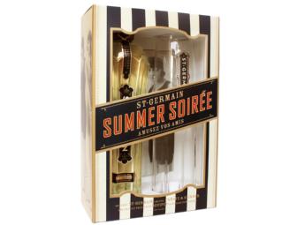 The St-Germain Summer Soirée Gift Set for home entertaining. Includes 1 750ml Bottle of St-Germain, 1 St-Germain Carafe, 1 Stirrer, and 1 Recipe Poster.