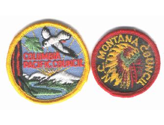 Two council round patches-North Central Montana Council and Columbia Pacific Council. The N.C. Montana Council patch is in used condition. Columbia Pacific Council in good condition.