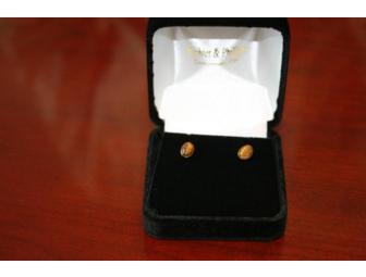 14K Yellow Gold Oval Shaped Tiger Eye Scarab Earrings