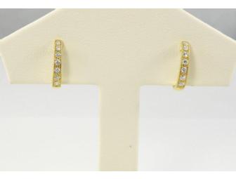 From Bachendorf's, ladies 18 karat yellow gold huggie earrings set with 14 diamonds weighing a total of 0.20 carats.
