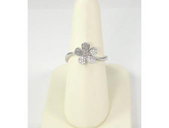 From Bachendorf's, a ladies 14 karat white gold flower ring set with 41 diamonds weighing a total of 0.20 carats.
