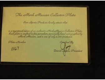 This Official Mark Messier Limited Edition Collector's Plate. #1167 of 3,000 by ENOR Sports Products. Comes with Laminated Certificate of Authenticy.