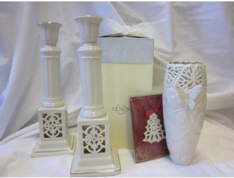 Lenox Ivory Fine China Candle Sticks, Bud Vase & Tree Ornament