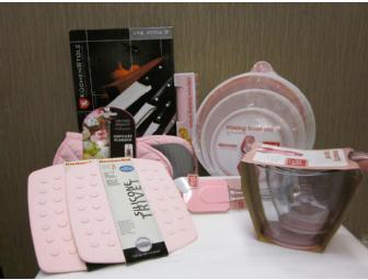 All the extras you need! This box contains all those special and pretty pieces you need to kick you receipes and your kitchen up to the next level. All in Pink for Breast Cancer Awareness.
