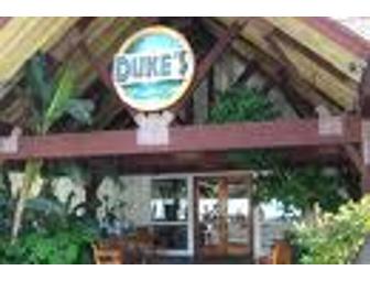 With our ocean breezes, swaying palms, postcard views, delicious food, not to mention our warm and friendly staff, Duke's offers you a relaxed atmosphere overflowing with the spirit of Aloha. We invite you to enjoy our peaceful and laid-back oceanfront setting in Malibu. The dining room lunch and dinner menus at Duke's include the freshest Pacific fish offered anywhere. It's why the locals come here. And why they keep coming back.
