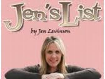 JEN’S LIST, a free daily e-mail newsletter and website reaching over 16,000 families, is the mom’s guide to what’s hot, new, and undiscovered – from baby products and nannies to fun family things to do. As useful as it is informative, Jen’s List is like getting an e-mail from your up-to date, and totally in-the-know SUPER mom of 5 boys. Jen knows about the latest and greatest products and services in the greater Los Angeles area- and always shares the scoop via the Jen’s List e-mail newsletter.