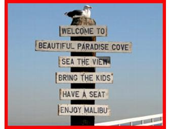 There is a memory in every visit at Bob Morris' Paradise Cove in Malibu, CA. It's the only restaurant in Malibu right on the sand with its own private beach and cove. Spend the day, explore the tide pools, see the dolphins go by, kick back and relax, and use this $100 gift certificate.