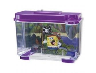 Kids love SpongeBob® and now the undersea world of Bikini Bottom® can be right in your child's room! This SpongeBob SquarePants® 3-D Pirate Tank Aquarium Kit lets your child enjoy their pet in the world of SpongeBob® and is a great way to teach your child the importance of caring for pets while holding your child's interest. The 3/4 gallon tank is perfect for a Betta or other small fish and the magnified feeding will amaze your child allowing them to watch & learn about their pet up close. The LED light adds a solf glow to the tank and serves as a night light for your child with a convenient on/off switch on the top. This aquarium kit includes everything your child's new pet will need for their underwater home. Kit includes a 3/4 Gallon Tank with an easy-feeding opening lid, full color background and a SpongeBob® 3-D Pop-Up Ornament. All you need is food, water and your pet and you are ready to go! Add your favorite plants or gravel (not included) or one of the many great SpongeBob® ornaments & accessories. With all the items available your child can continue adding to the look and feel of their SpongeBob® undersea world. Tank measures 10" long by 5" wide by 7" high (including hood). LED night light requires 4-AAA batteries (not included).