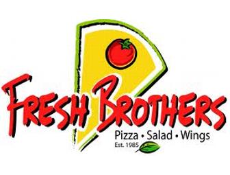 Each child is given a Fresh Brother's pizza box to label and decorate with stickers, markers, and crayons. The children then get to create their own edible masterpieces! Once cooked, pizzas are placed back into their boxes and brought out to the dining area.