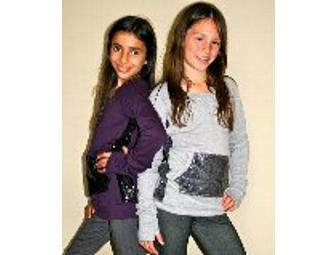 Super Comfy - this sweatshirt french terry with charcoal sequins. The sleeves even have thumb holes! Pairs great with leggings, denim or shorts! Your girl will love it!