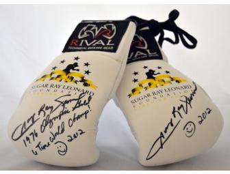 A pair of white boxing gloves signed by Sugar Ray Leonard. Priceless!!