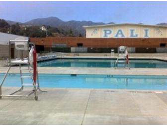 The "small" pool is yours for two hours at the Maggie Gilbert Aquatic Center at Pali High. Up to 75 guests allowed. Timing subject to Pali schedule.