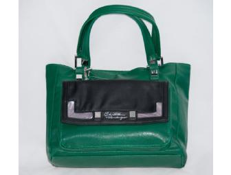 Christian Audigier handbag in green with black accent pocket.