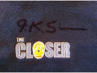 One grey hooded crew jacket from "Spiderman" (the movie), and one dark blue fleece jacket from the TV show, "The Closer," both XL. Each is signed by JK Simmons who played J. Jonah Jameson in Spiderman.