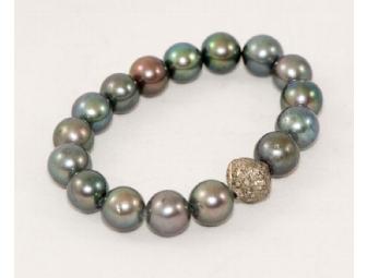 Grey South Seas pearl bracelet with diamond bead, which has been black rhodiumed for antique effect. Valued at $550.