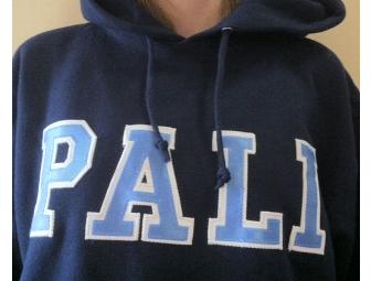 Dark blue, hooded sweatshirt with Pali logo (no zipper). Choose from sizes Small, Medium, Large, XL and XXL available at pick up.