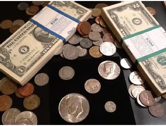 The lucky winner will receive five varieties of dollar coins including one from 1883, three varietiesof half dollars including one from 1917, and 22 other unique coins. In addition, $200 in uncirculated, bank-strapped sequential $2 bills and $100 in uncirculated, bank-strapped $1 bills, as well as three other interesting pieces of currency. And, if that is not enough, there is even a $1,000,000 Three Stooges bill.