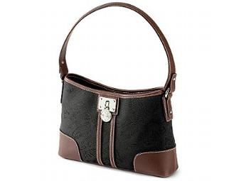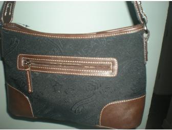 COLOR: BLACK WITH BROWN LEATHER LIKE TRIMMING AND CREAM STITCHING
