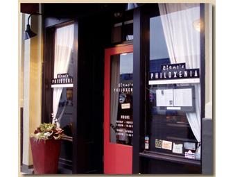 Philoxenia (hospitality) Estiatorio (restaurant) offers Cretian-style food with an abundance of olive oil, garlic and fresh vegetables. On the island of Crete friends will gather at an Estiatorio or Taverna and enjoy long evenings of shared appetizers, wine and conversation... lingering over the freshness. In this tradition, Eleni's offers many more appetizers than you would normally find on a menu, each handmade to order.