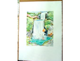 Water color, color pencil and ink on water color paper. Artist unknown.