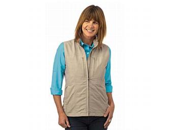 Our Women's Travel Vest has more pockets, more features, more functionality and more style than any other travel vest on the market. Missing are the exterior patch pockets that scream, "valuables inside." We've replaced them with 22 discretely placed pockets and compartments - a must for travel clothes. Airport security will be a breeze: just take off the vest and send it through the x-ray with all your gear safely stored inside. You'll feel like you got a special exception to the one carry-on rule. The women's pocket vest is incredibly versatile and can be worn comfortably indoors, outdoors and as an added layer. You'll never believe all of the gear you are carrying since our Weight Management System™ balances the load and our NoBulge™ Pockets give it a streamlined look. The lightweight, breathable material is thin enough that you can control your iPod® right through the fabric. Teflon® treatment repels water and stains. You don't need to wait for a trip to use it-it will make every day feel like a vacation. 65% Cotton/35% Nylon (Teflon® treated) with silky interior. Machine Washable.