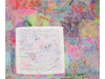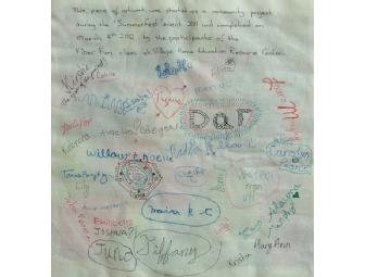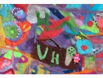 “This piece of artwork was started as a community project during the "Summerfest" event 2011 and completed on March 6th, 2012 by the participants of the Fiber Fun class at Village Home Education Resource Center.”