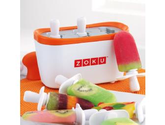Simple-to-use maker provides endless opportunities for hours of delicious fun for the whole family! The Zoku Quick Pop Maker freezes ice pops in as little as seven minutes right on your countertop without electricity. Quickly layer flavors for striped pops, yogurt pops, cream-filled pops and, for the first time ever at home, flavored core pops—just add fresh ingredients.