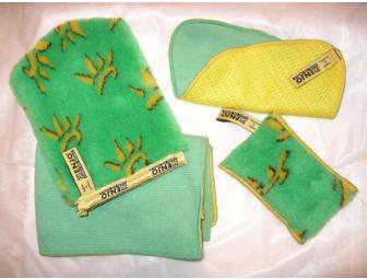 The ENJO Kitchen Pack consists of the Kitchen Glove, the Kitchen Classic Sponge, the Kitchen Enjofil, and the Fruit and Vegetable Cloth. These cloths allow you to clean your entire kitchen with just cold water! Designed to cleanse grease, oil, food residue, and 99.9% of bacteria, viruses and fungi from deep in surface crevices--leaving your kitchen sparkling and streak-free!
