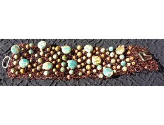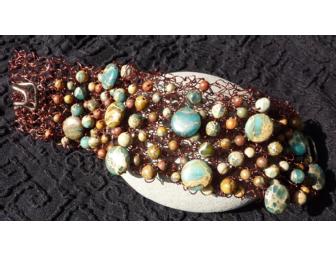 Beautiful Knitted Wire & Stone Bead Bracelet